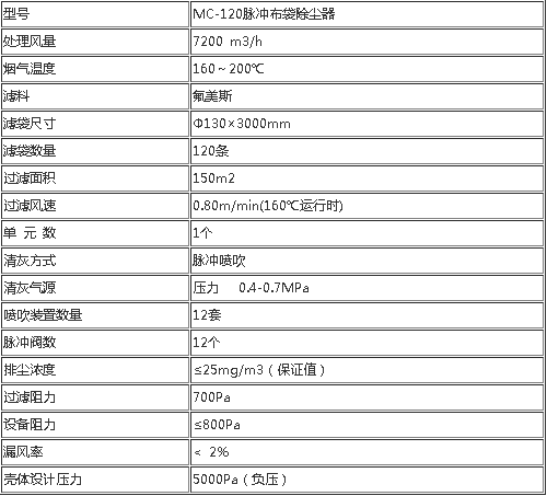 小型燃煤鍋爐除塵器的技術(shù)參數(shù):